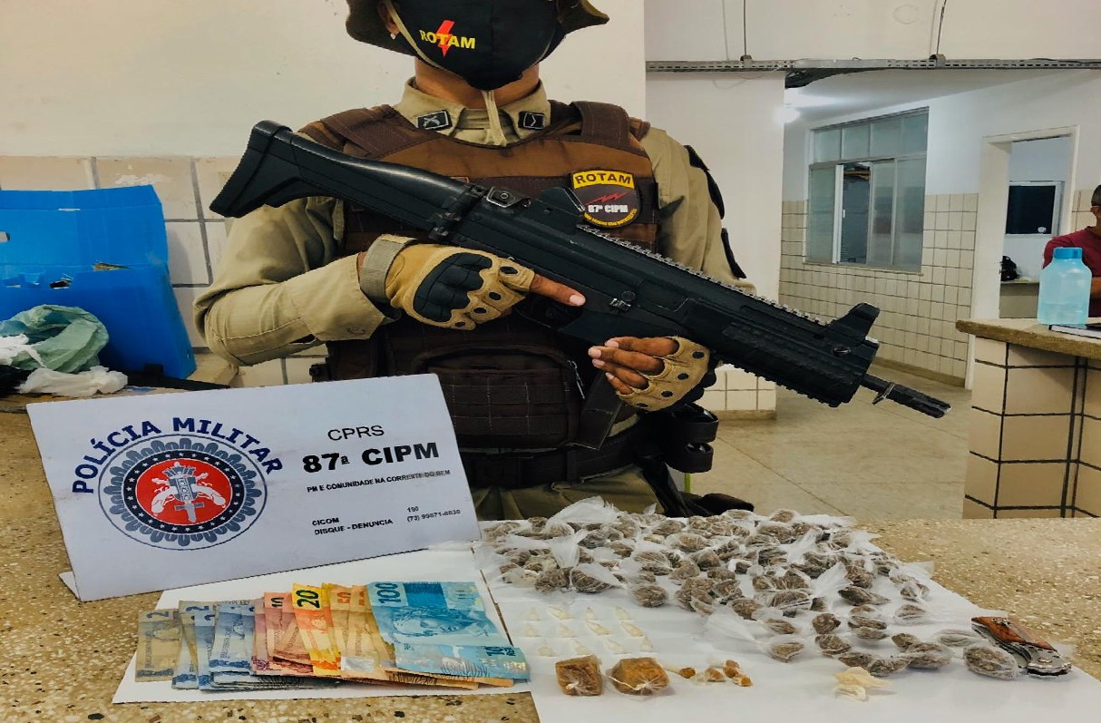 Uma guarnição da ROTAN/Raio Vermelho aprendeu no início da tarde desta segunda feira, 18 de maio, no bairro Wilson Brito “Buraquinho” em Teixeira de Freitas, um adolescente de 17 anos, portando várias poções de drogas e um canivete.