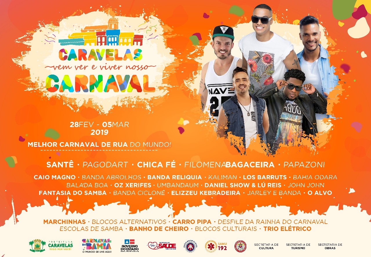 Na programação artística estão nomes como Pagodart, Santê, Chica Fé, Filomena Bagaceira, Papazoni e mais 16 atrações. O melhor carnaval de rua é em Caravelas.