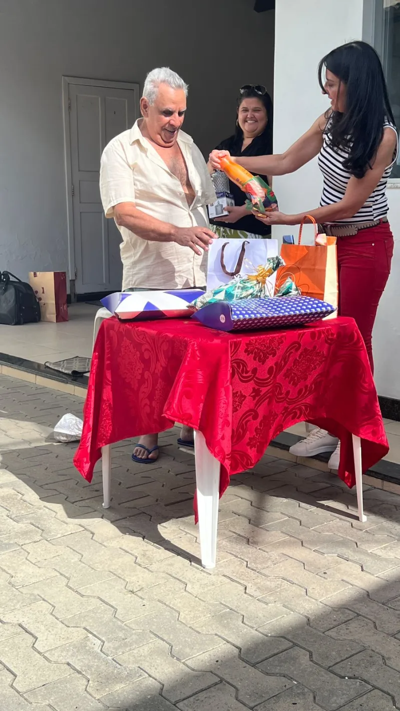 O anfitrião, Dr. Leonardo Felipe, ao lado de sua esposa Suele, recepcionou os convidados com um delicioso churrasco, preparado especialmente para a ocasião. A tarde foi marcada por risadas, abraços sinceros, alegria contagiante e, claro, a tradicional troca de presentes, que deixou o encontro ainda mais especial.