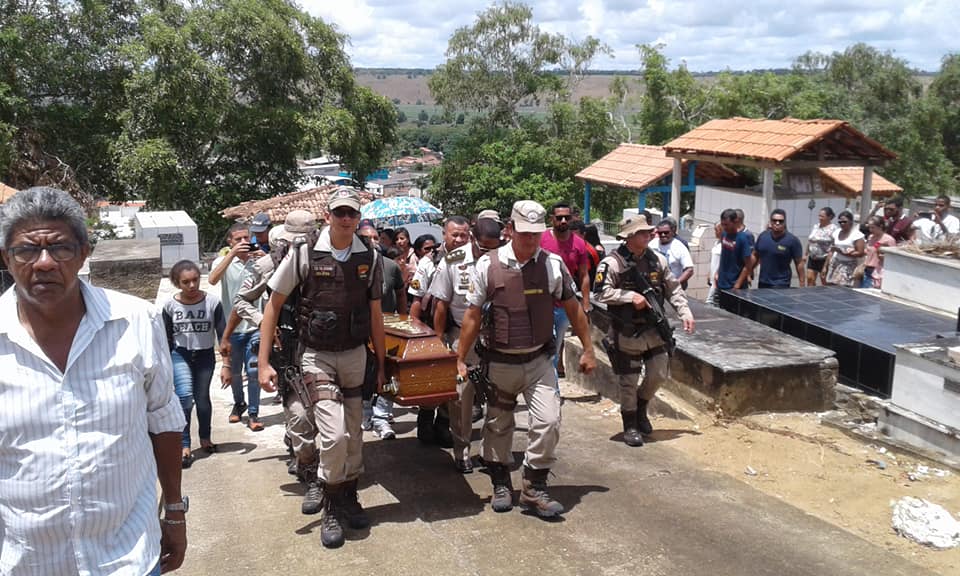 Foi com muita emoção, aplausos e palavras de admiração e carinho de amigos, parentes e colegas de farda que o corpo do Cabo da Polícia Militar, Adailton de Brito Silva, lotado na 43ª CIPM, foi sepultado na manhã desta terça-feira (05), no Cemitério local. O cortejo do caixão foi carregado por policiais militares até o túmulo e seguido pela família e pelos amigos.