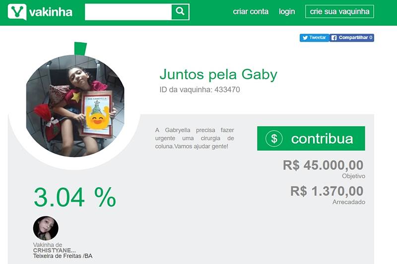 Qualquer pessoa pode ajudar a pequena Ana Gabryella a fazer a cirurgia, basta acessar o link, fazer o cadastro e doar qualquer valor. Uma conta poupança também foi aberta no nome de Ana Gabriella Santos Costa – Agência: 3822 Op: 023 Conta Poupança: 00005239-5, Caixa Econômica.