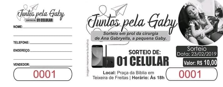 A intenção do jogo beneficente é vender o máximo de bilhetes e assim conseguir arrecadar o dinheiro necessário para a cirurgia. Comprando o bilhete você concorre a um celular e uma churrasqueira.