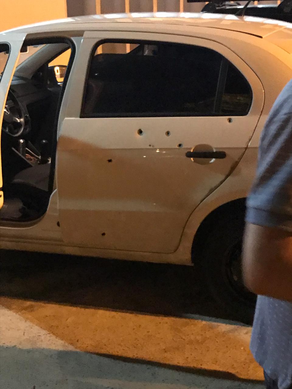 Na lataria do carro ficaram as marcas dos tiros. Após atirar várias vezes contra o veículo, os criminosos fugiram tomando rumo ignorado. A polícia vai investigar o caso.