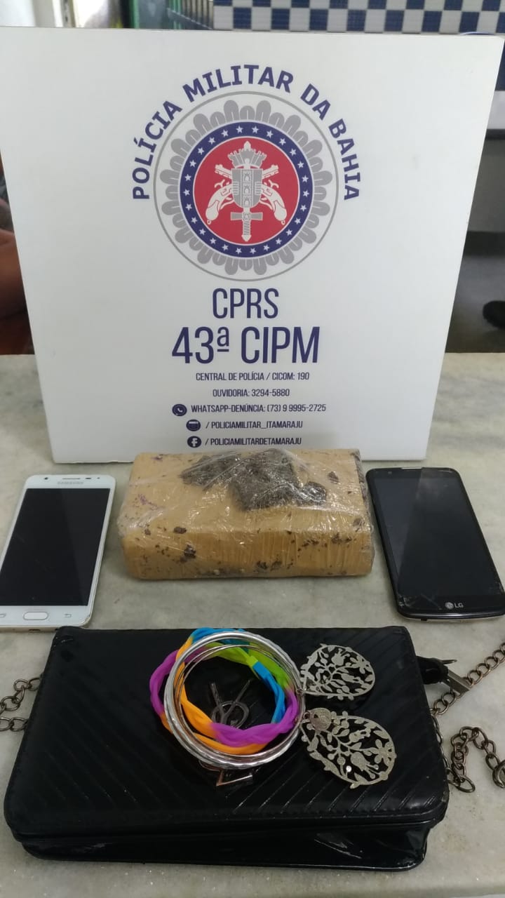 De imediato, a guarnição deslocou-se para à rodovia BA 486 e, na saída de Itamaraju, montou uma barreira, abordando uma pessoa do sexo feminino com as características da denunciada. Na abordagem, os militares localizaram, com uma menor de 14 anos, uma quantidade de 500 (quinhentos) gramas de uma droga prensada e embalada, conhecida como maconha.