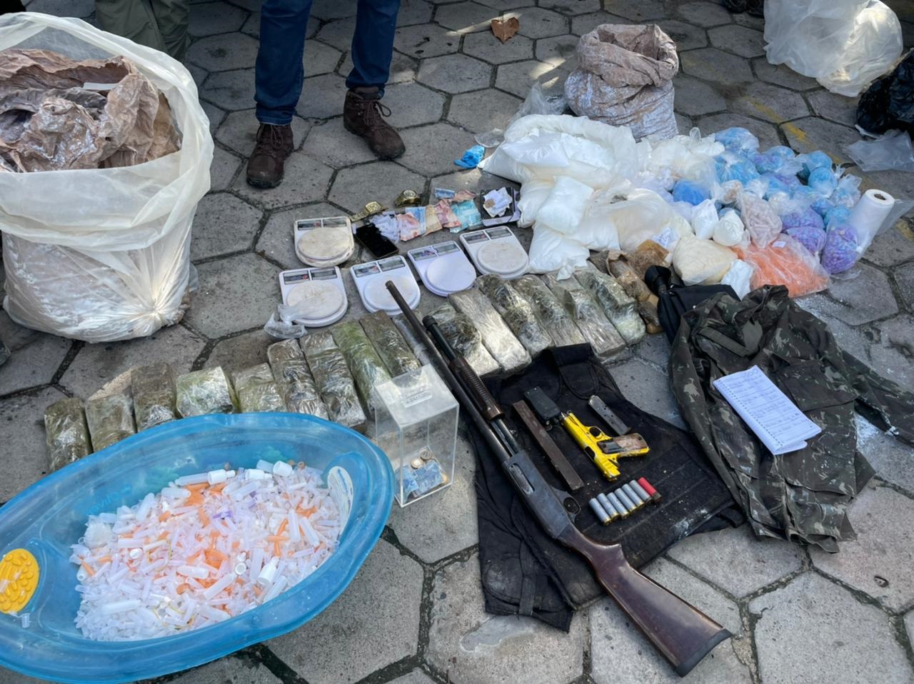 Em continuidade a ação, os policiais descobriram uma casa utilizada como refino de cocaína. No imóvel foram encontrados, além dos 100 kg da droga, 3 mil pinos para armazenar drogas, munições, um carregador de pistola, 16 tabletes de cocaína, um colete balístico, 16 tabletes de maconha, cinco balanças, um colete balístico, R$ 324 e caderno de anotações do tráfico.