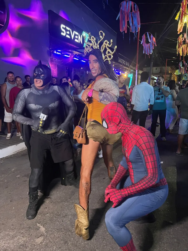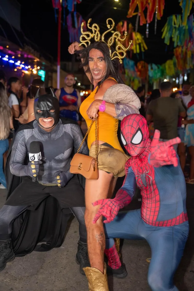 Rainha da Pituba chegou escoltada por Batman e Homem Aranha
