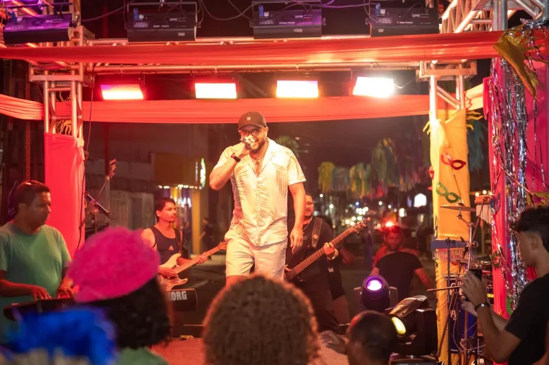 Com um inovador palco 360°, a festa ganhou um formato dinâmico e envolvente. De todos os ângulos, o público pôde acompanhar as apresentações dos artistas locais, que levaram ao palco repertórios variados — do axé às marchinhas tradicionais — garantindo animação para todas as idades.