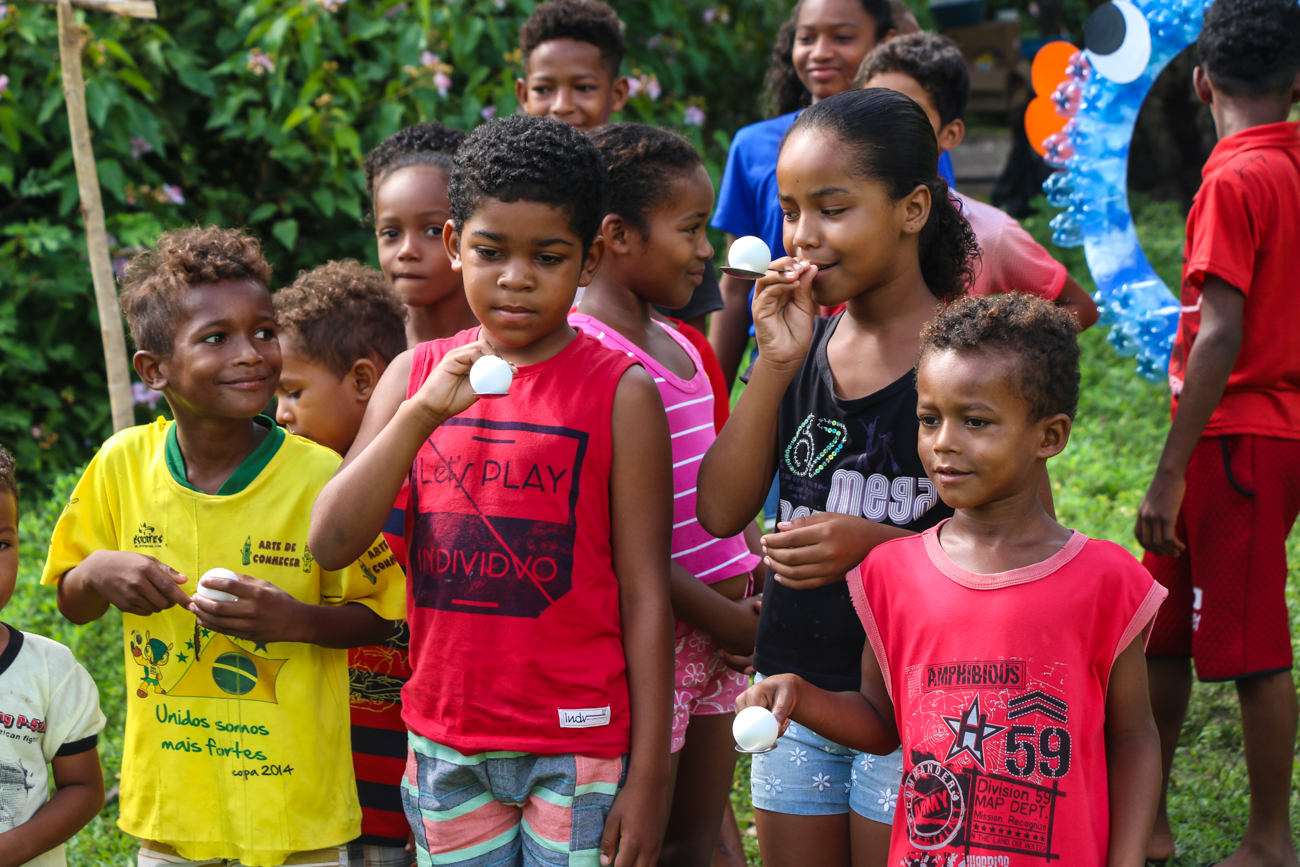 Uma caravana enfrentou o desafio de percorrer quase 100km de estrada (entre asfalto e chão de terra) até a Comunidade da Boca do Rio. Na bagagem, alegria, serviços sociais, de saúde e muitas brincadeiras (pular corda, passar a bola, peteca, balanço e tantas outras).