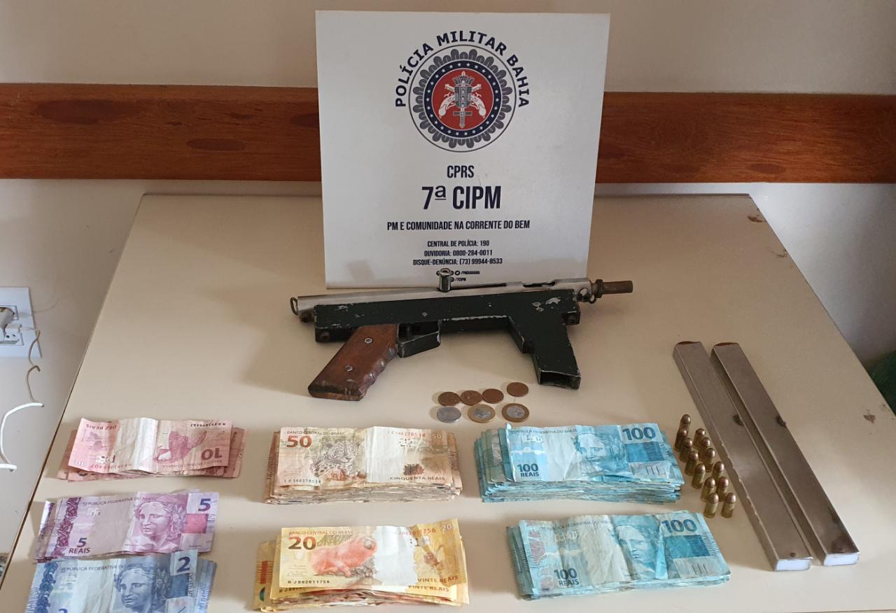 01 sub metralhadora calibre .380 de fabricação artesanal, 13 munições calibre .380 intactas, 02 carregadores, 01 veículo GM Amarok Prata ***9I99 e a quantia de R$ 12.386,45 (doze mil, trezentos e oitenta e seis reais e quarenta e cinco centavos) em espécie.