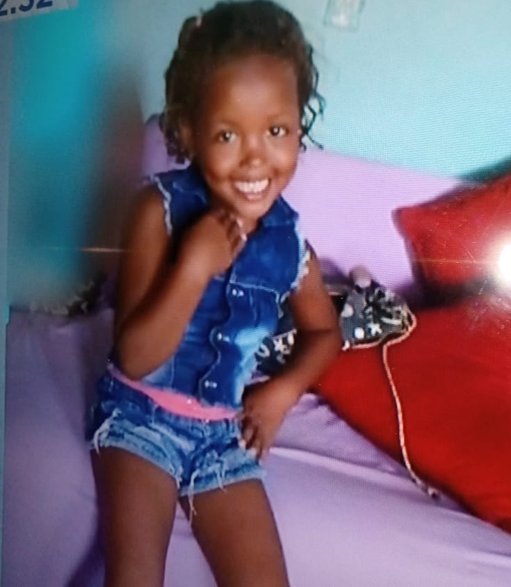 a Maikele de Jesus Santos de apenas 07 anos morta com um tirono peito quando assistia TV com a mãe